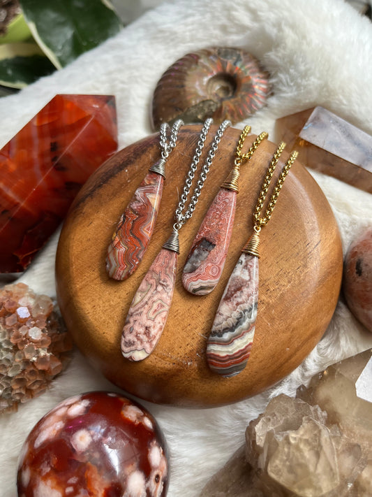 Crazy Lace Agate Healing Pendant on Stainless Steel/18k Chain – Optimism, Joy & Balance Talisman Gift with Ritual Packaging