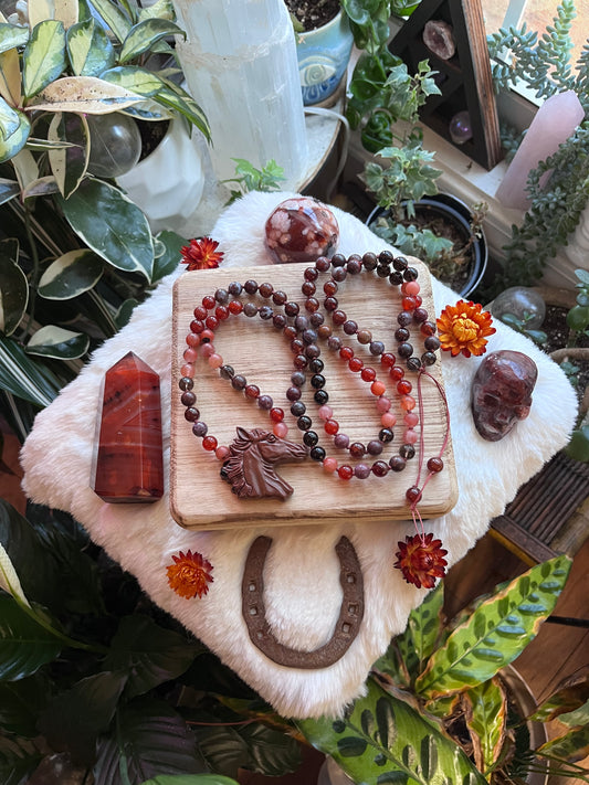 Fire Horse “Ignite” mala necklace, meditation jewelry, mala beads, japa mala, carnelian jewelry, lunar new year, year of the fire horse