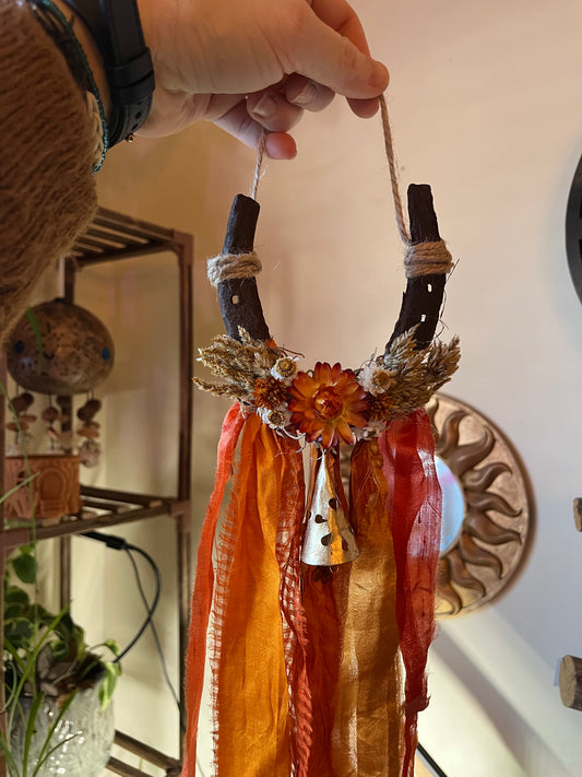 Fire Horse Lucky Horseshoe with flowers: Pagan Altar Decor