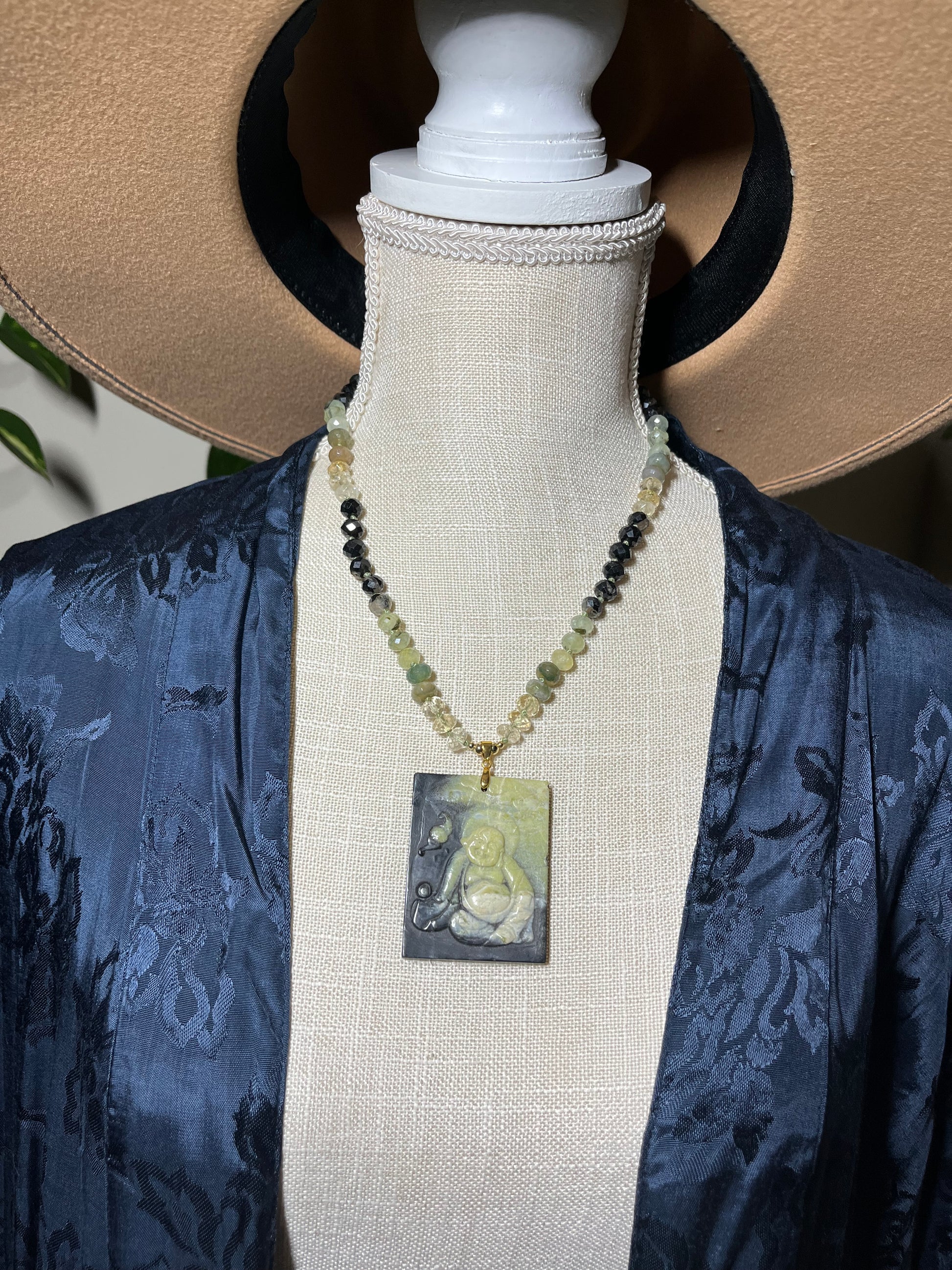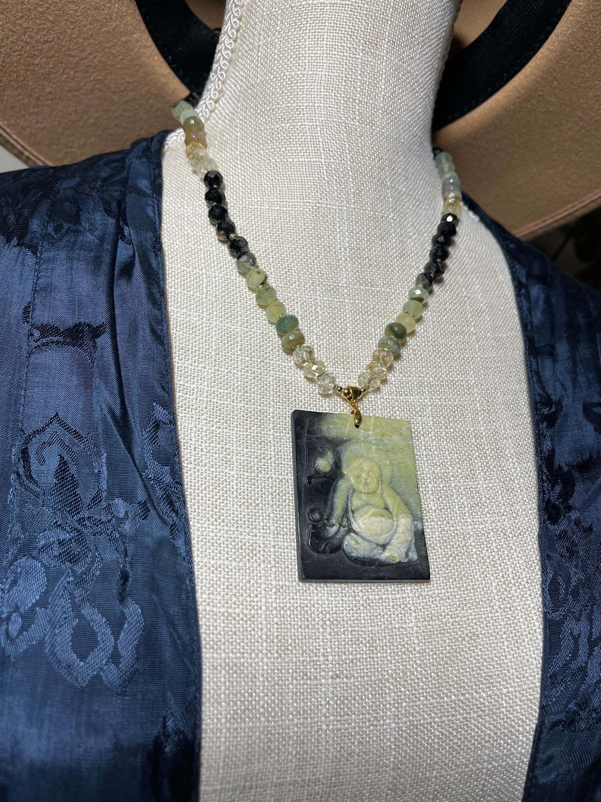 A gorgeous mix of Green and Black stones with a stunningly detailed Buddha pendant carved from Serpentine 💚🖤