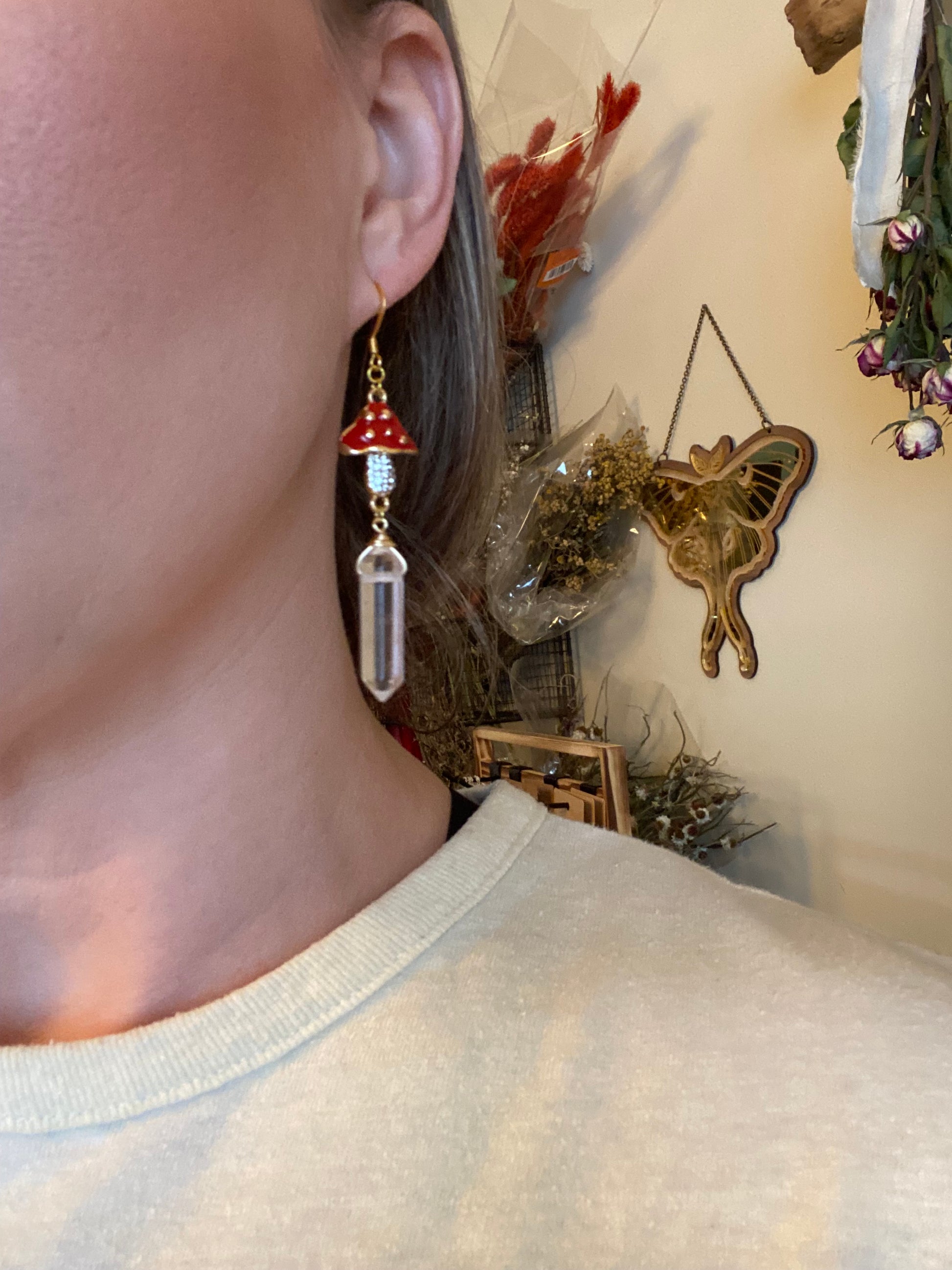 The cutest Amanita mushroom earrings with Quartz points fit for a fairy queen! π§π»ββοΈβ¨πΏππ