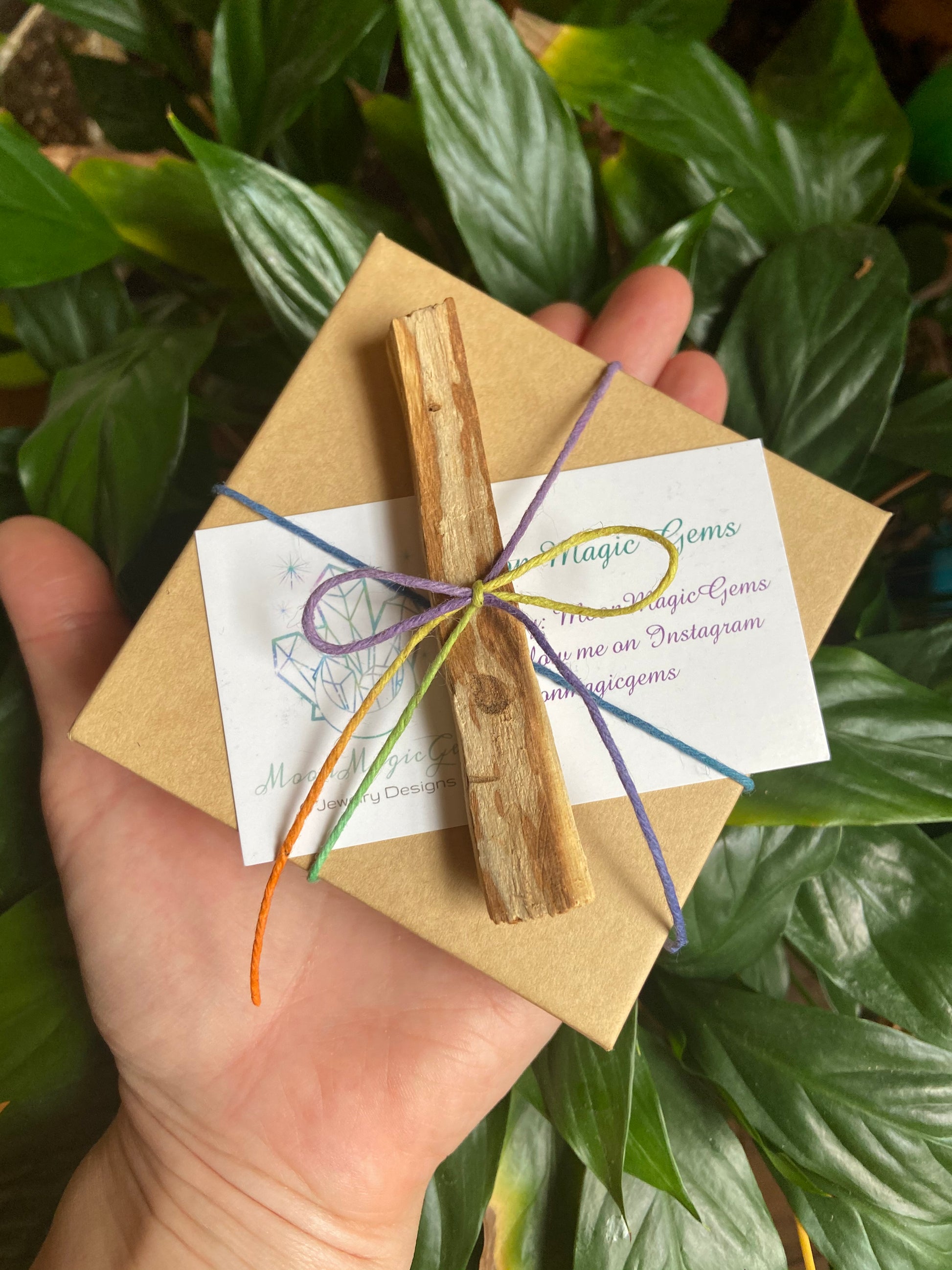 Packed in a kraft paper gift box with a piece of palo santo for cleansing your jewels and a crystal gift π