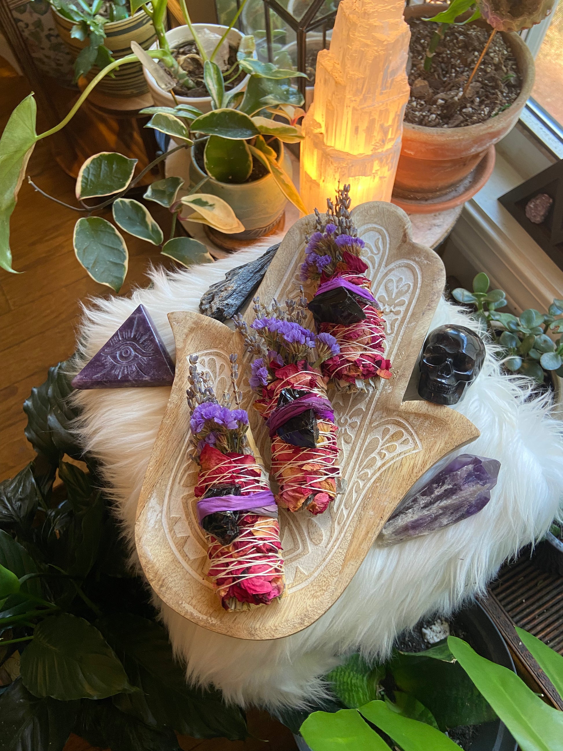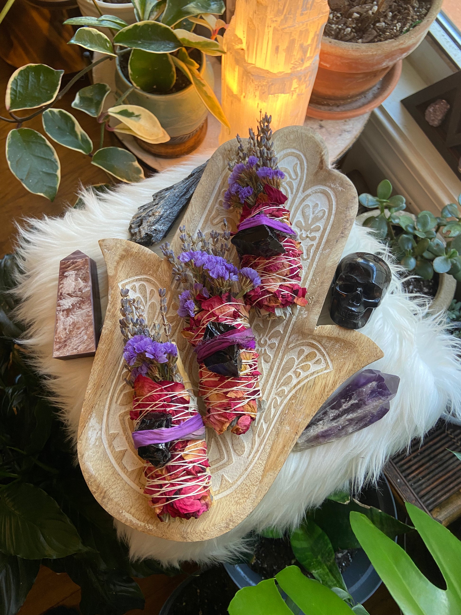 Bring positive energy to your space with a fragrant smudge stick bundle! Perfect for clearing out negative energy and raising the vibe 🖤🌹🔮