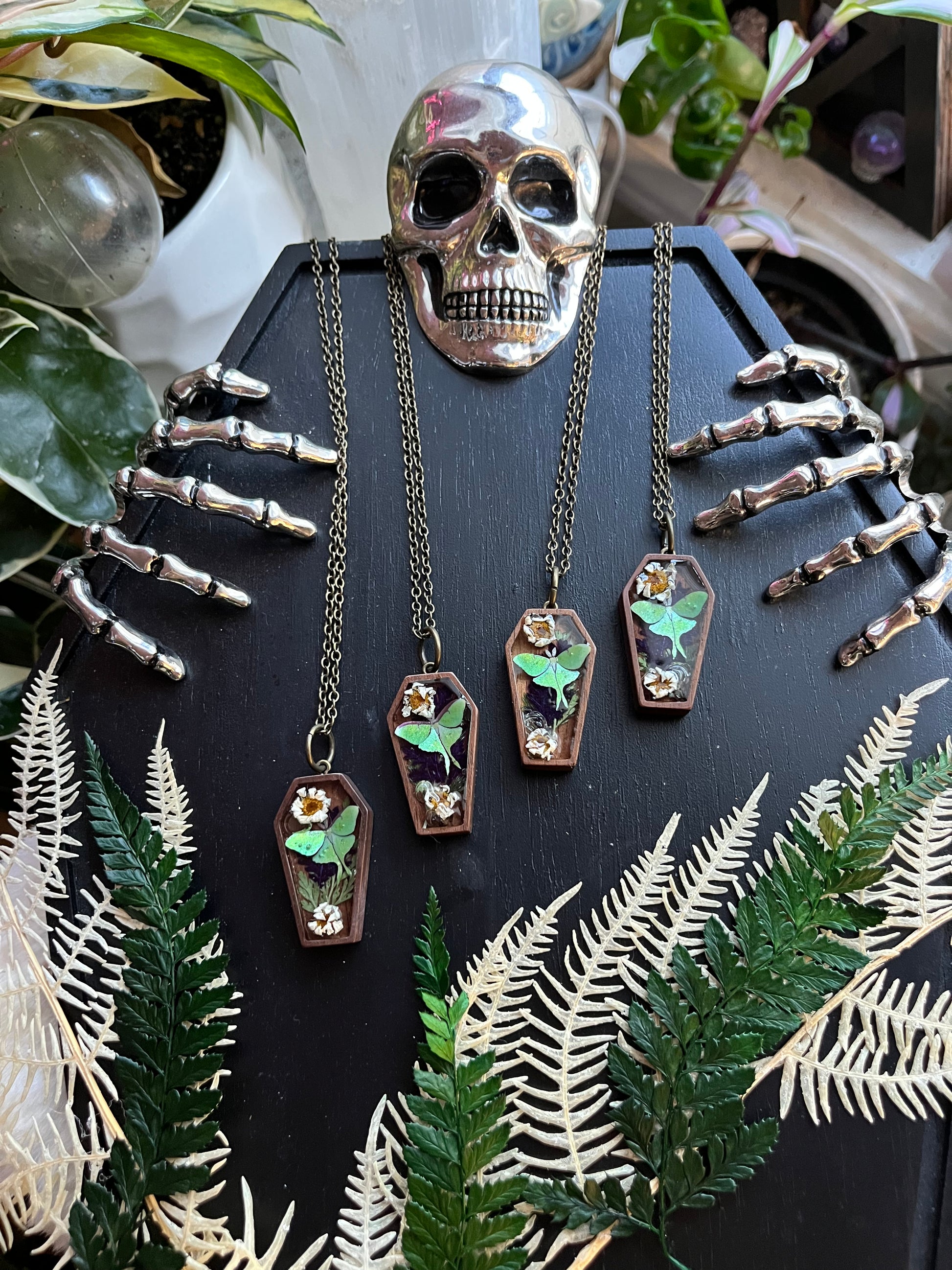 A delightful mix of goth and cottagecore aesthetic, these coffin necklaces are perfect for witchy nature lovers πΏπ¦π€