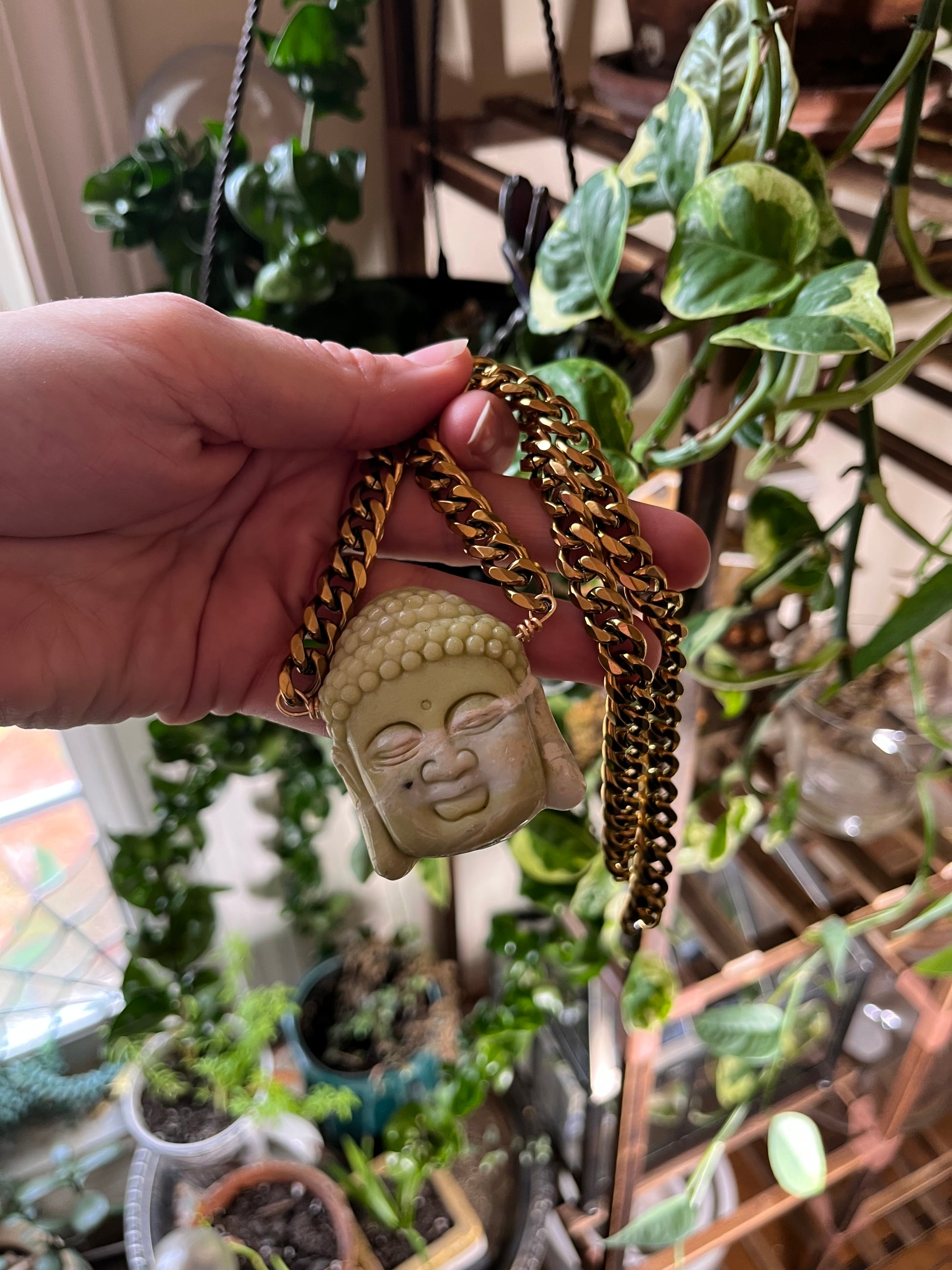 Gorgeous one of a kind Serpentine Buddha on 18k plated stainless chain for that badass statement look ✨🥲⚡️🔥💎🔮